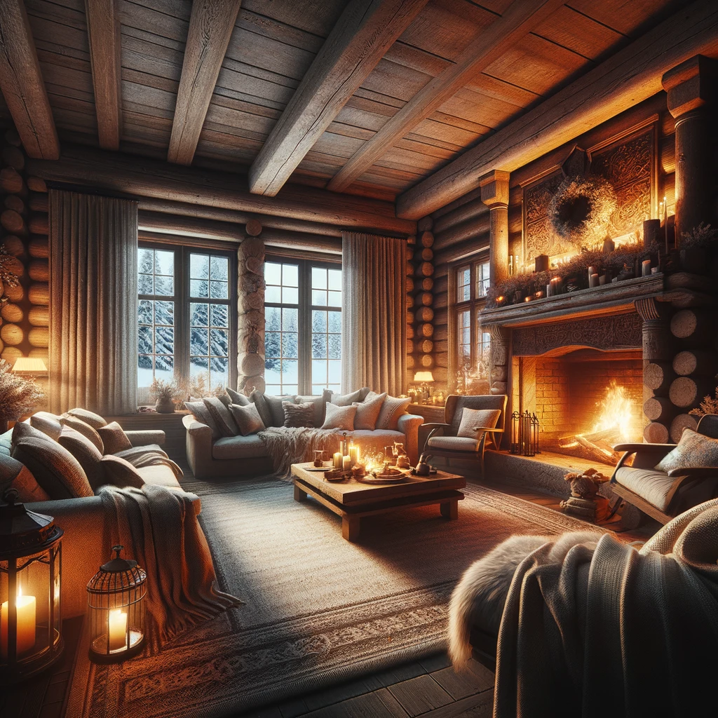 - The cabin features a spacious living area with a warm fireplace, ideal for relaxing after a day of exploring the beautiful surroundings.