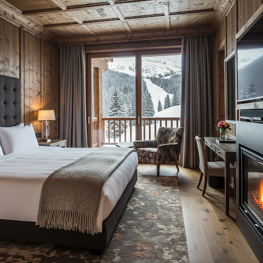 - The loft features a comfortable living area with a fireplace, perfect for unwinding after a day of skiing.